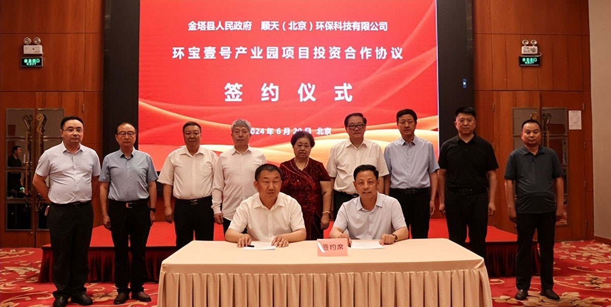 李巖副縣長、甄成君董事長分別代表金塔縣政府和順天(北京)環??萍加邢薰竞炗啞?ldquo;環寶壹號產業園項目”...